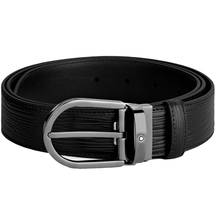 Черный кожаный ремень с подковообразной пряжкой 35мм от магазина премиальных ручек Premium Pens в Миассе.